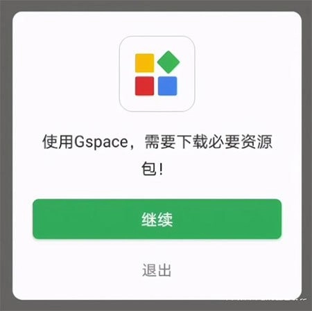按照提示安装必要的资源包后,点击“继续”按钮,Gspace就会自动完成GMS所需文件的安装。
