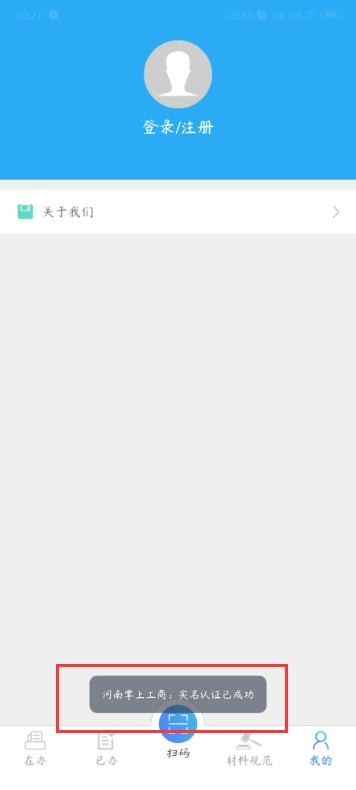 7、人像采集之后,工商登记手机上出现如图提示,则认证成功;