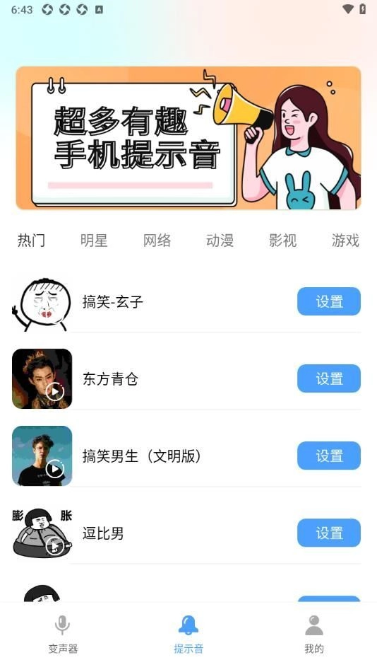 提供多种预设变声效果,如小孩大叔和萌妹等,满足用户在不同场合下变声需求。
