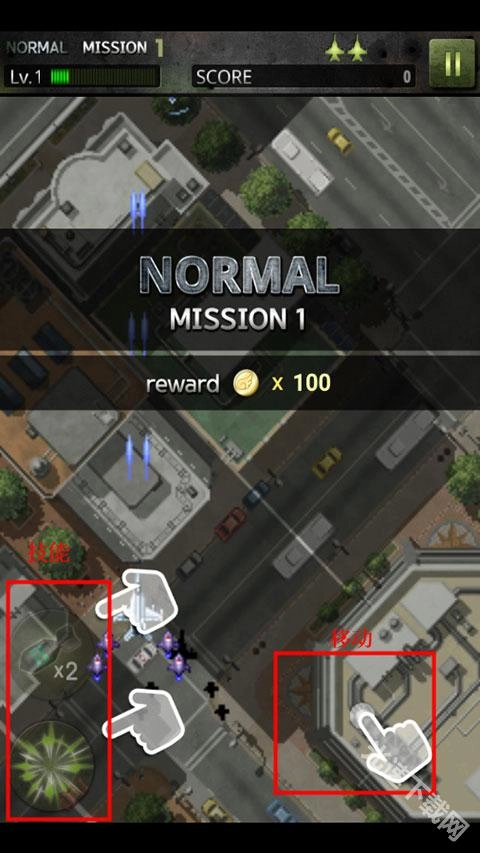 进入游戏后,通过滑动屏幕就能操控飞机移动,左侧设有两个可供使用的技能。