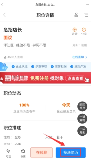 点击“投递简历”按钮,上传个人简历后就能完成职位投递啦。
