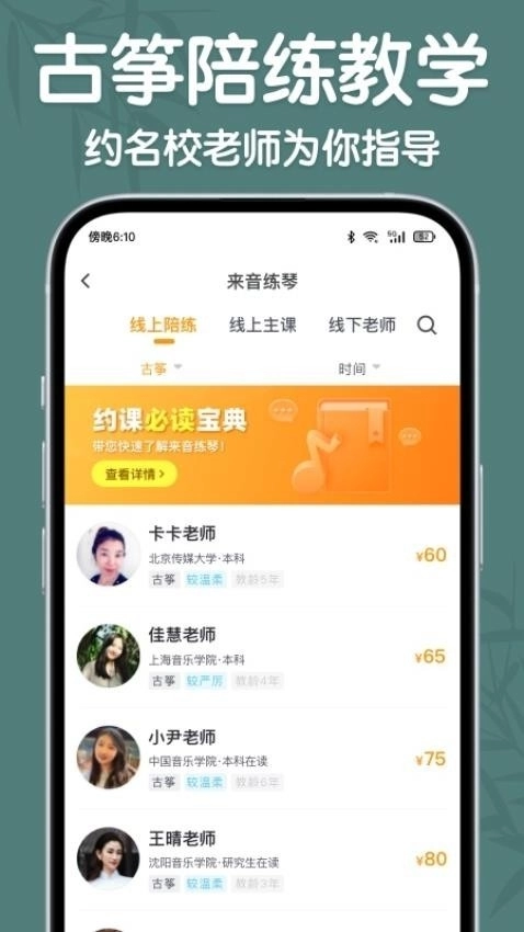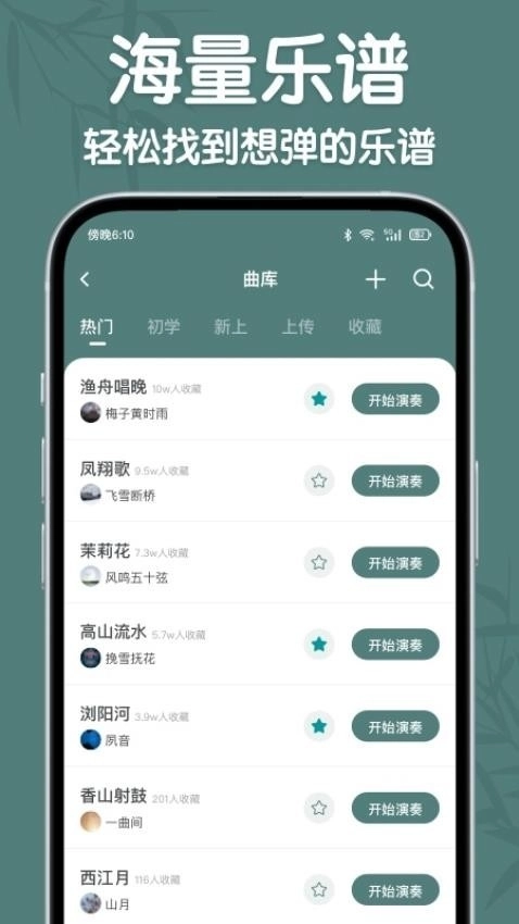 和高端古筝品牌携手合作,定制出能呈现乐器最佳声音的专业音频,以此增强学习成效;2、具备全球范围内最全面的古筝曲谱数据库,涵盖不同学习水平,用户能够不受时间地点限制进行查阅。