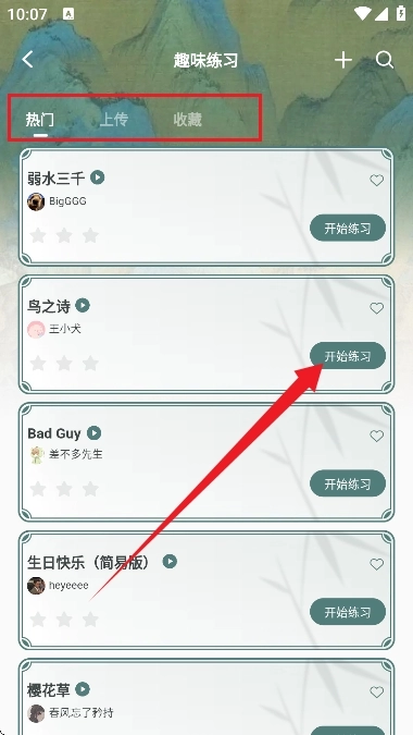 3、选择其中一项功能进入,如趣味练习。这里可以看到众多热门的练习内容,我们可以选择一项自己感兴趣的内容,然后点击右侧的【开始练习】