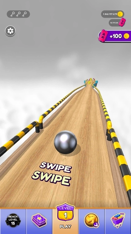玩家可以通过滑动屏幕来操控球体的移动,滑动的速度会直接影响球的前进速度。当向左滑动时,球会朝着左前方滚动;向右滑动时,球则会向右前方滚动。当通道两侧没有围栏或者遇到障碍物时,玩家需要及时减速,以防球体掉出通道,从而浪费游戏机会。