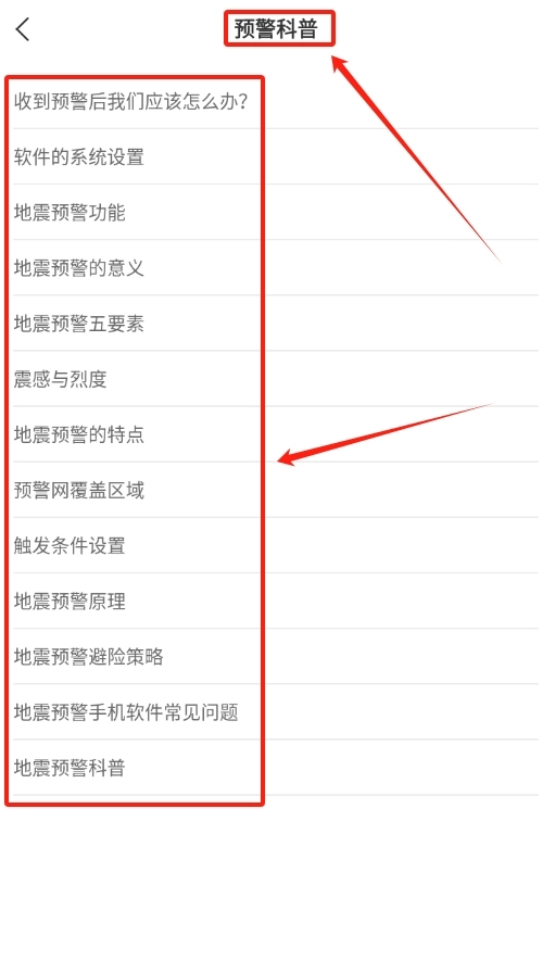 点击科普页面中的“预警科普”板块,就可以查看多样的地震预警科普内容,提升应对地震的能力。
