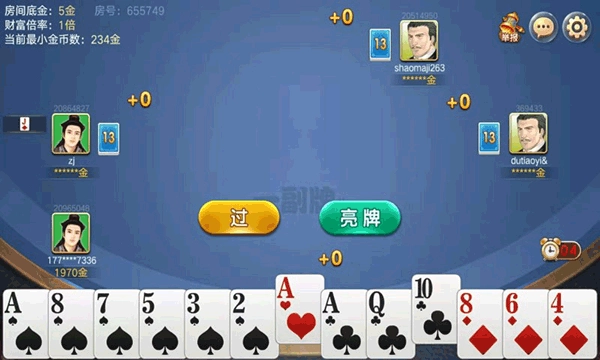玩家能够选择一副牌或两副牌来开展游戏,四人在线的竞技玩法,具有很强的可玩性。