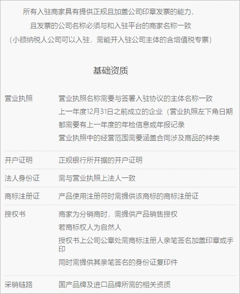 且发票的公司名称必须与和入驻平台的商家名称一致
