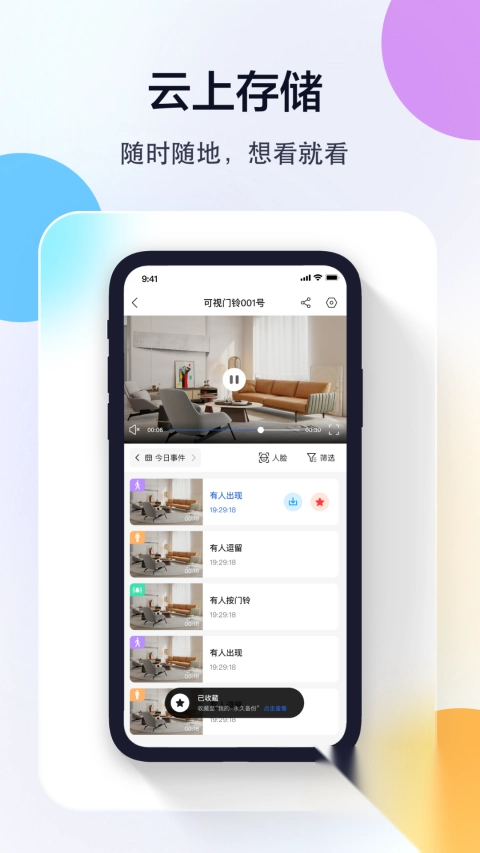 1、看店看家:可随时查看家庭、商铺、办公室等场景的实时画面与云端录像,助力您便捷管理办公事务,时刻守护居家安全,达成远程关怀与智能陪伴,还能分享生活中的精彩瞬间。