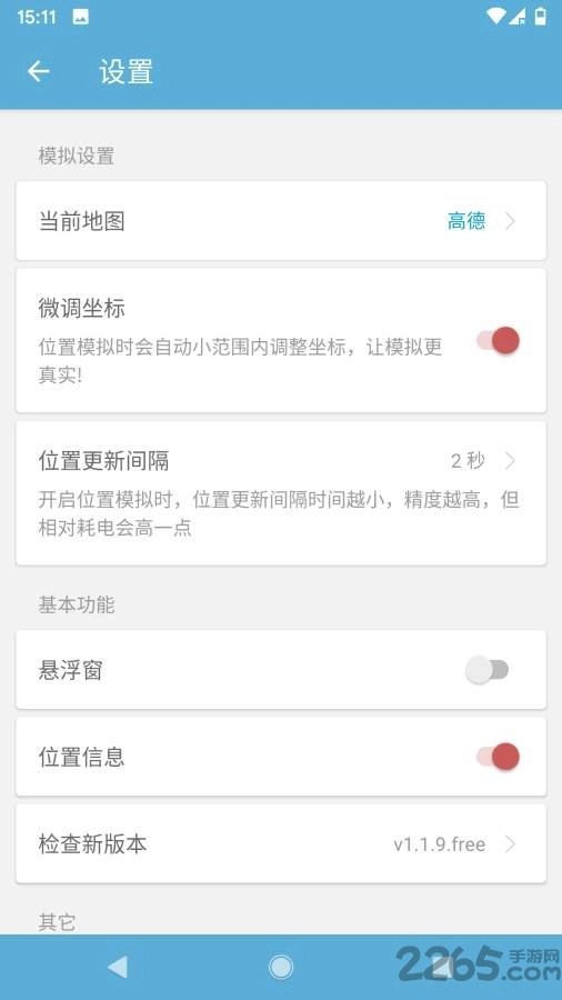 5、最后返回到首页看到“正在模拟”即代表成功模拟定位,你可以自行打开地图测试是否成功。