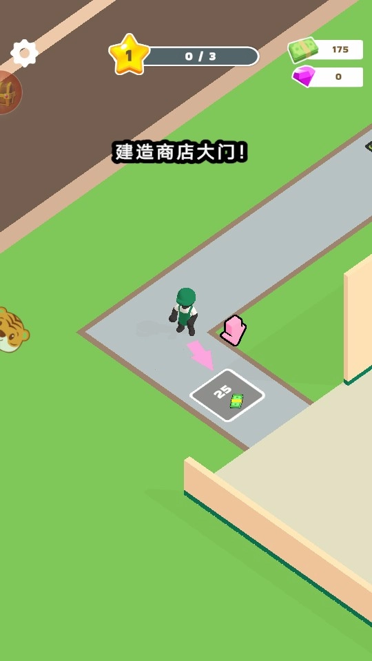 先用资金建造商店大门,解锁店铺基础区域。