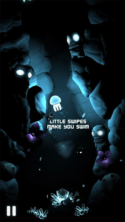 通过滑动屏幕来操控水母移动,滑动的方向就是水母行进的方向,具体可参考下图。