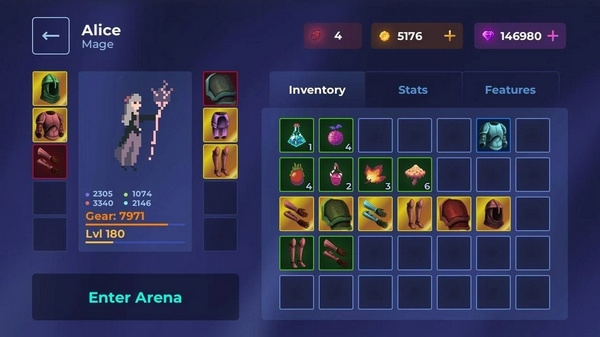 玩家选择一位仙境英雄,在竞技场中通过使用技能、拾取场景道具与对手周旋。