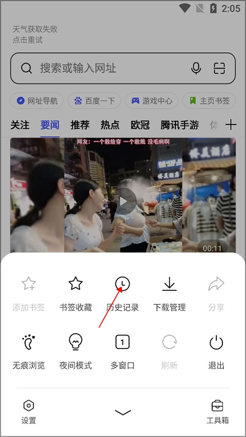 1、先安装OPPO手机浏览器的最新版本,打开进入首页后,点击页面下方的菜单栏,具体位置可参考图示。