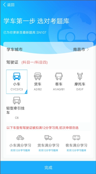 1、学车第一步选对考题库,根据用户自身的需求来选择要报考的驾驶证