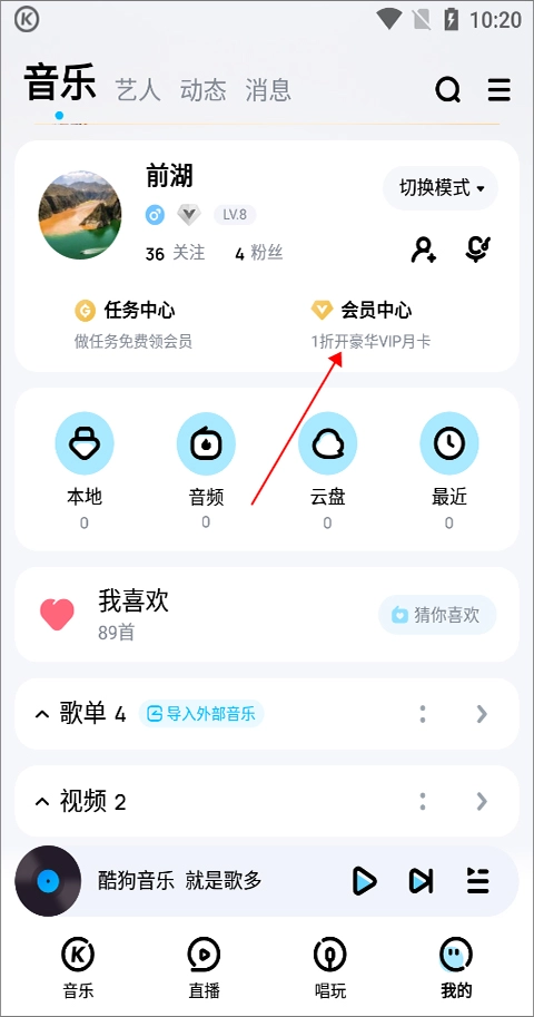 1、进入酷狗音乐【我的】页面中点击【会员中心】