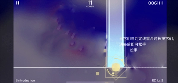 接下来是Hold音符,当它们与判定线重合时长按它们,消失后即可松手。