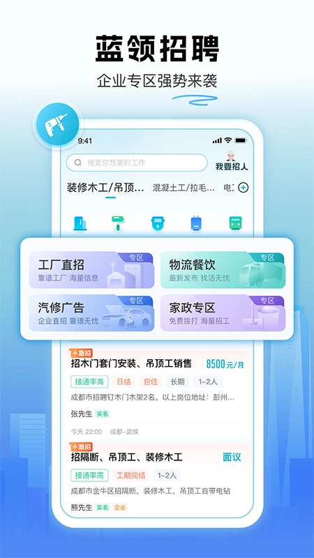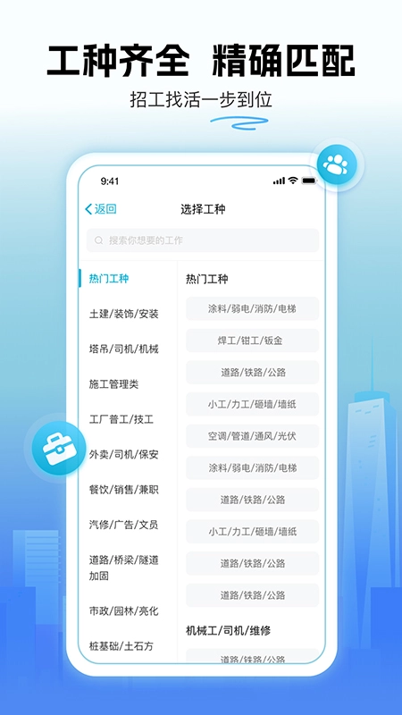 工种丰富多样,行业精准匹配!