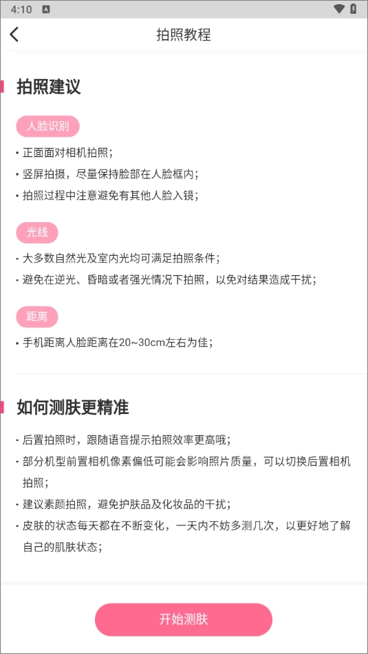1、进入,点击开始测肤