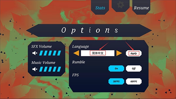 2、在设置界面点击箭头按钮可以将English切换至简体中文,点击Apply确认选择