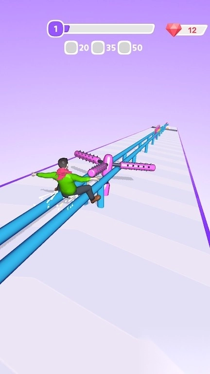 进入游戏后,通过左右滑动屏幕来控制角色在滑梯上左右移动;下滑过程中,倾斜手机能够微调滑行角度;长按屏幕可以触发短暂的加速效果,不过要注意,加速状态下若碰撞到障碍,会受到双倍伤害。