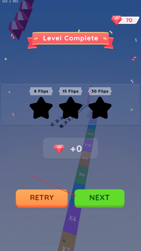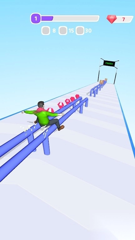 当滑行遇到分叉滑道时,需提前留意各分支路径的情况:蓝色分支属于安全通道,不过沿途的钻石数量相对较少;红色分支则遍布各种障碍,但其中藏有珍稀的钻石箱。当抵达终点后,系统会依据你的滑行姿势以及收集到的钻石数量,来综合计算最终的星级评分。