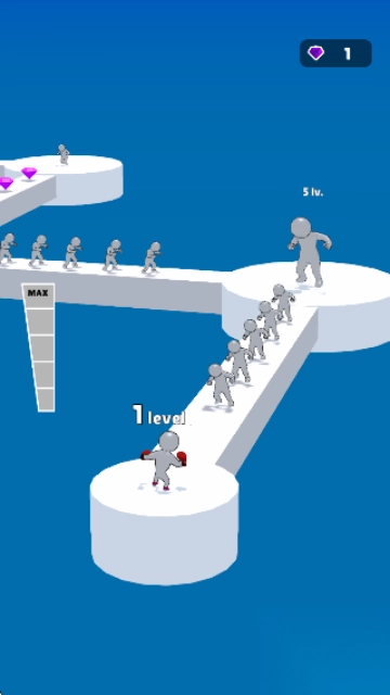《升级向前冲》深度融合动作冒险与策略成长元素,打造了一个活力四射且充满挑战的橡皮人世界。玩家将化身为团队领袖,在动态变幻的三维场景中开启极限挑战之旅。通过精准操控橡皮人的移动轨迹与技能释放时机,巧妙跨越各类障碍物并战胜强大Boss。同时,高效运用策略思维与操作技巧,在紧张刺激的限时挑战中,尽情体验突破自我的酣畅快感。