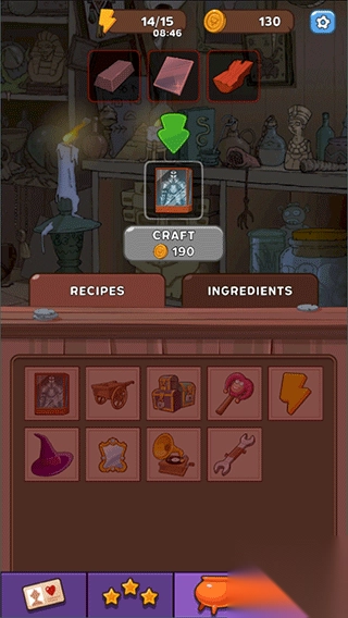 当订单生成后,玩家得迅速在炼金锅内合成客户指定的道具。每个商品都要通过多个低阶物品的融合来制作,并且要一步步提升品质等级。