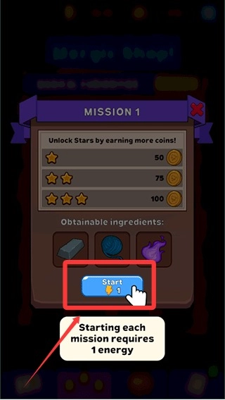 进入游戏后选择你想挑战的关卡,开启每个关卡前需要消耗一点能量。
