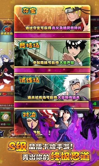 动漫里的经典角色全都来了,你可以自由挑选忍者,还能灵活搭配组建出只属于自己的阵容。