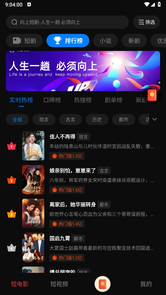 汇集数百部独家原创短剧,单集时长1–5分钟,剧情紧凑无注水,涵盖逆袭、甜宠、悬疑、亲情、创业等多元类型,每日更新不断档。