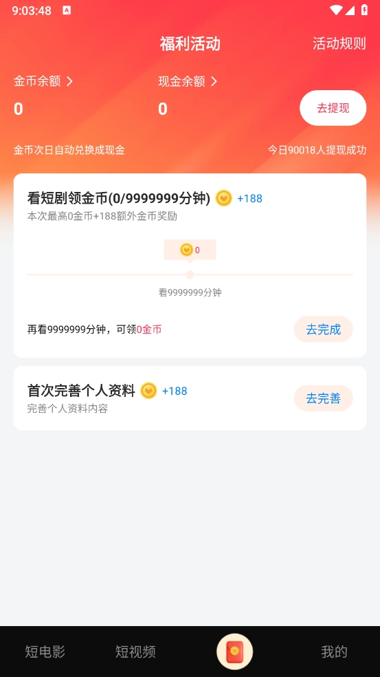 最后在福利活动页面,完成任务就能领取相应的金币奖励。