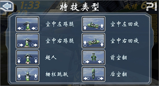 2、要施展特技,请于赛艇在空中时在屏幕下方滑动你的拇指,试着尝试不同的组合