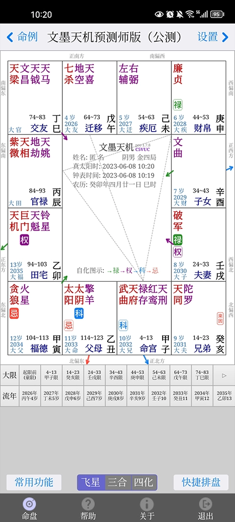 5、提供方便快捷的大限和流年切换功能,大幅提升初学者的使用体验。