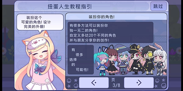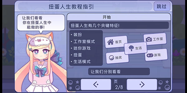 1、在扭蛋人生中打扮一下,创建场景,玩小游戏,探险,还有扭蛋!本教程将帮助您开始这段旅程!点击箭头按钮来导航。