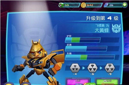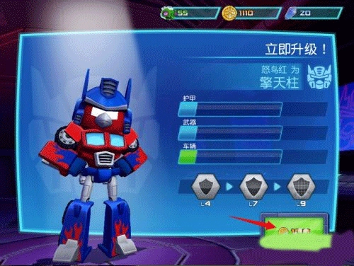 要论跑车里谁最亮眼?雪佛兰科迈罗化身的大黄蜂绝对是大家印象最深的那个。对它进行升级能显著提升武器威力和车辆能量,游戏前期我们正是需要高攻击力来快速通关,所以得赶紧用金币把它升到3级,这样就能赚取绿色猪头了。