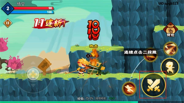 5、游戏界面的右下角设有一个跳跃按钮,连续点击该按钮就能实现二段跳。