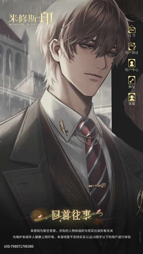 1、打开米修斯之印,手机号获取验证码注册登录,登录后点击回首往事开始游戏;