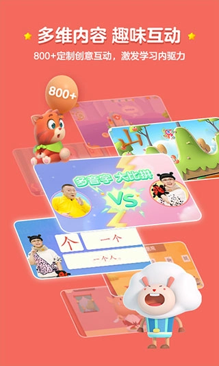 洪恩识字的最新版本是一款功能强大的学前教育软件,其学习体系贴合2-8岁儿童的认知发展规律,通过科学分龄设计,让不同年龄段的孩子在趣味互动中轻松且牢固地掌握汉字。软件配备了丰富的互动内容,还有原创的进阶式阅读绘本作为配套,既增加了识字过程中的趣味性,又带来了新鲜感,帮助孩子保持学习的热情与动力,真正实现寓教于乐,让他们能轻松快乐地学习汉字,自信无压力地步入小学。