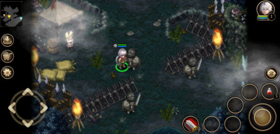 6、游戏中角色拥有不同技能,还可以释放技能、使用血瓶来恢复自己的血量。