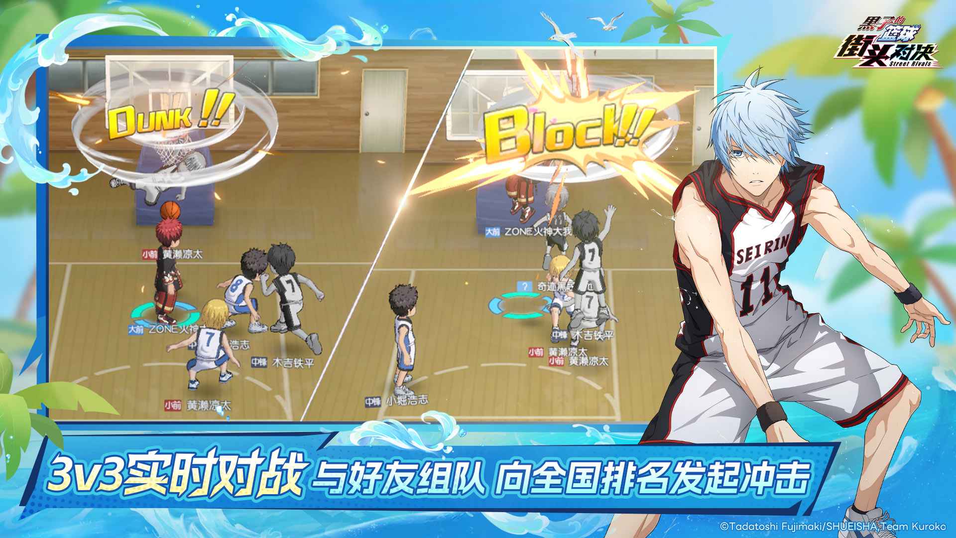 黑子的篮球:街头对决手游是一款正版二次元运动游戏,采用先进游戏引擎打造,在游戏中还原真实的篮球比赛,让玩家可以轻松体验篮球运动。原著动漫角色都在游戏中还原,熟悉的定位,技能,属性等,可以轻松选择喜欢的球员比赛。多种玩法模式,单人模式,多人模式,排位模式等,给玩家带来丰富的篮球比赛乐趣,游戏体验非常不错。