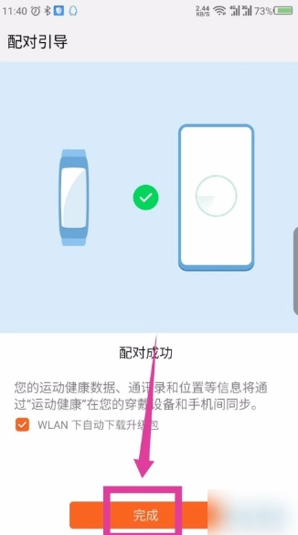 第六步,来到配对引导页面后,根据提示进行操作,成功配对后,点击页面底部的完成选项