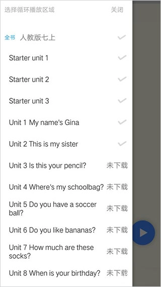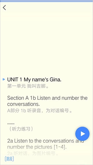 2、接着选择想要听的课文,就能直接收听了。第二种方式是选择要听的单元,点击进入即可。