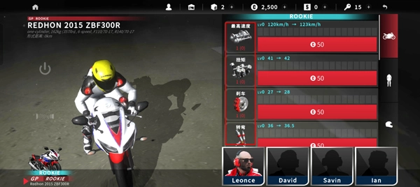 三、真实摩托2怎么怎么升级车