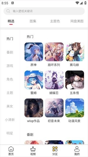 “分区”页面提供了更细致的分类,能让你更便捷地找到各类壁纸。
