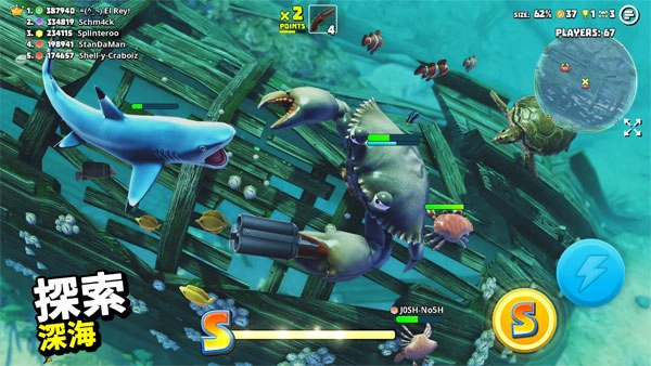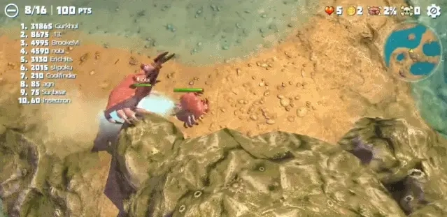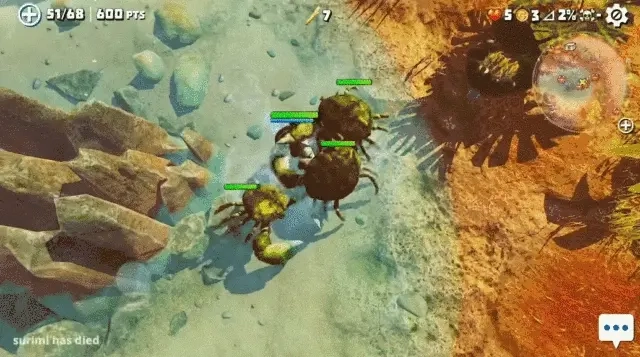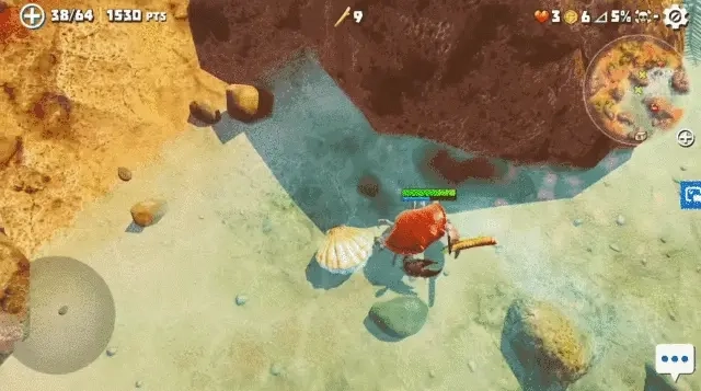 2、游戏的舞台设定在一座庞大的海岛上,每局游戏大约会有65名玩家加入。所有玩家开局时都是毫不起眼的小螃蟹,想要变得更强,最主要的途径就是通过“吃”来实现。