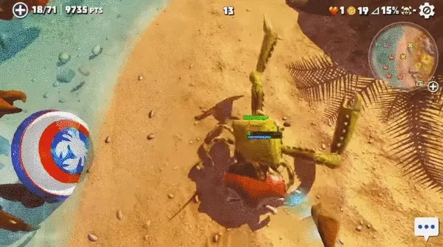 4、除了可以徙手“吃对手”,我们还可以在海岛上寻找掉落的装备或箱子。在这些箱子里面可以找到武器,使用武器可以增加螃蟹的攻击力和防御力。