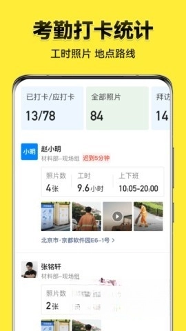团队功能支持拍照与视频内容自动同步至团队内部,同时系统会自动生成考勤报表,助力提升管理效率。