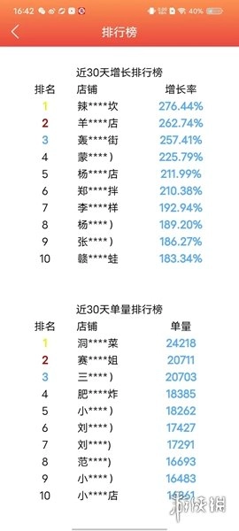 点击【排行榜】,可以查看近30天的增长排行情况与单量排行情况。