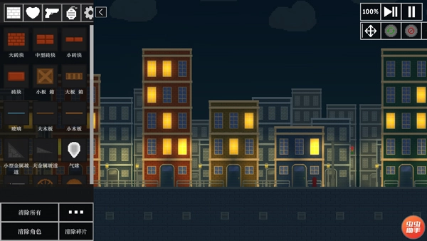 3、进入游戏界面后,玩家可通过点击左侧的物品栏,自由添加所需物品来进行创作。