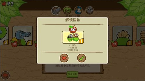 8、利用得到的苹果解锁加血技能,并将其装备到毛毛虫的身上。